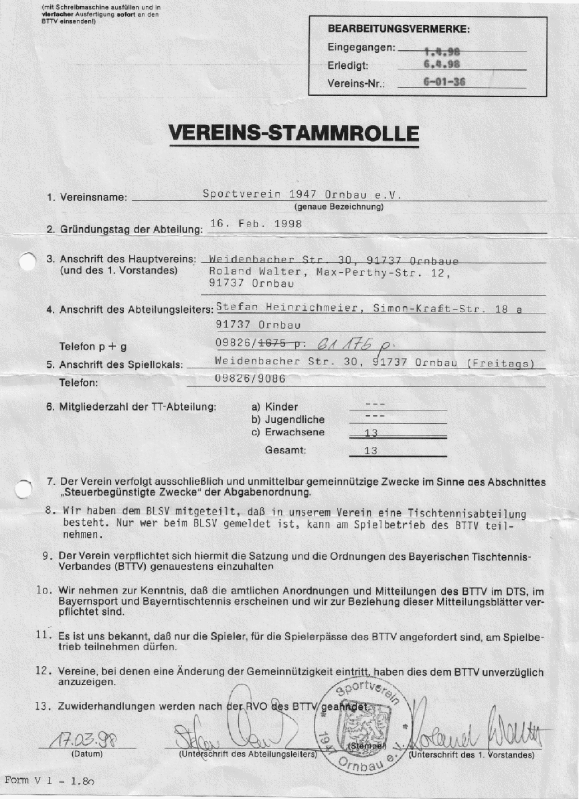 16.02.1998 Gründung der TT-Abteilung des SVO