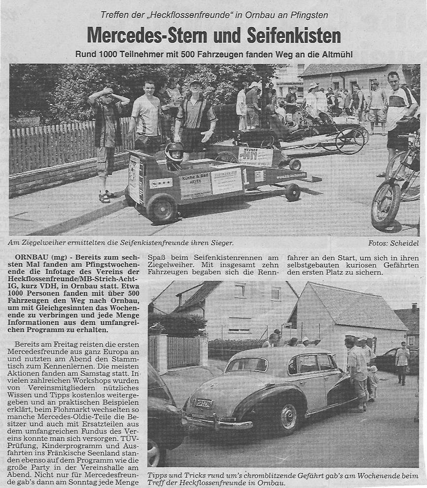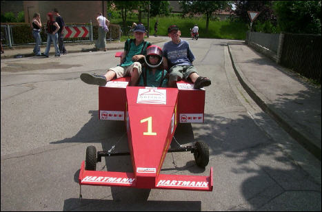 An dem vom VDH (Verein der Heckflossenfreunde) veranstalteten Seifenkistenrennen nahm die Tischtennisabteilung erstmals teil. Das für den Faschingsumzug gebaute Formelauto konnte mit nur geringen Umbauaufwand dafür verwendet werden. In der Gesamtplatzierung belegten wir leider nur den vorletzten Platz. Wie aber in der nachfolgenden Bildergalerie zu sehen ist, war die Konkurrenz einfach zu stark. Trotzdem hat es viel Spaß gemacht.