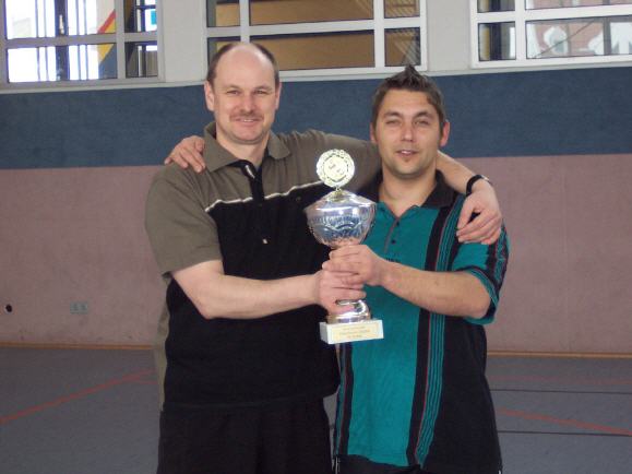 In der Doppelkonkurrenz traten 6 Doppel gegeneinander an. Die ersten 6 Spieler der Rangliste wurden gesetzt, der jeweilige Spielpartner wurde dann zugelost. Auch die Doppelmeisterschaft, die im Tabellenmodus gespielt wurde verlief sehr spannend. Nach Abschluss aller Spiele hatten 3 Doppelpaarungen mit 4:1 die gleiche Punktzahl, die Doppel Geffers/Heinrichmeier und Dott/Riedmüller sogar die gleiche Satzzahl. Gemäß dem -Reglement entschied in diesem Fall der direkte Vergleich, wodurch sich das Doppel Geffers/Heinrichmeier den Titel glücklich aber nicht unverdient sicherte.