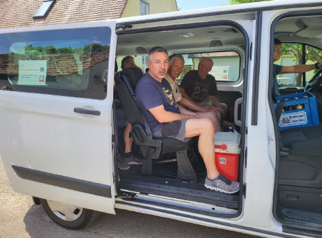 Los ging es am Freitag um ca. 14:30 Uhr mit dem Ornbauer Bürgerbus. Alle 8 Teilnehmer*innen wurden nach und nach eingesammelt. Da der Stauraum für unser Gepäck etwas knapp wurde, ließen wir die Kindersitze mitsamt „roter Tasche“ (Insider) bei Helmut. Einen Kasten Bier mussten wir schließlich auch noch einladen. Die Hinfahrt verlief gut, abgesehen von einer kurzen Unterbrechung wegen eines Unfalls auf der A6 kurz vor Nürnberg. Glücklicherweise kamen wir mit nur wenig Zeitverlust gut durch den Stau und erreichten gegen 18:30 Uhr unsere Unterkunft, den Gasthof Müller in Lichtenfels/Reundorf. Nach dem Bezug der Zimmer setzten wir uns noch kurz im Biergarten mit Blick auf Kloster Banz, Vierzehnheiligen und den Staffelberg zusammen. Einige Motivierte besichtigten derweilen den beschaulichen Ort.